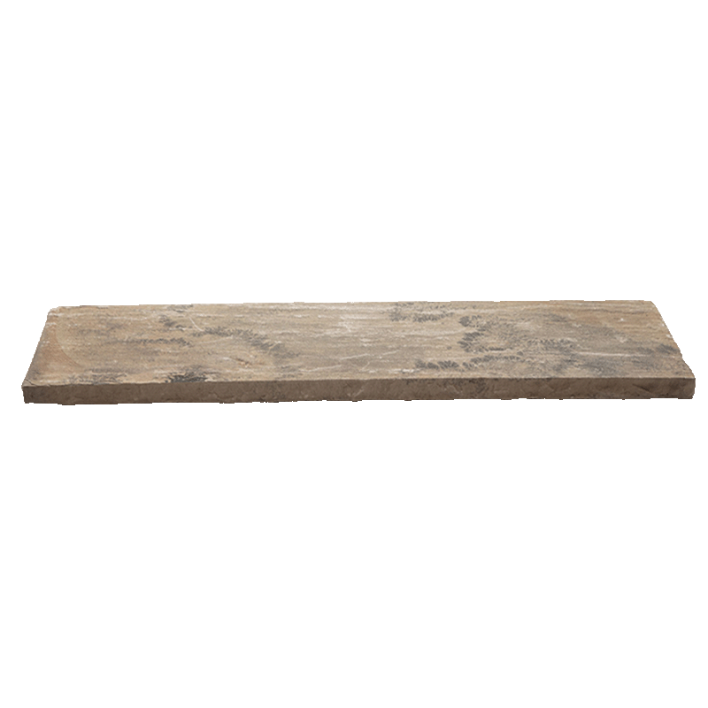Additionally, they can be used as mantels and hearths for fireplaces. Three sides of the treads are saw cut while the fourth side is chiseled for a dramatic overall appearance.
